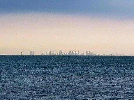 شهدت مدينة الخبر ظهور واضح لأبراج مملكة البحرين بالعين المجردة على الجانب الآخر من الشاطئ خلف مياه الخليج العربي .