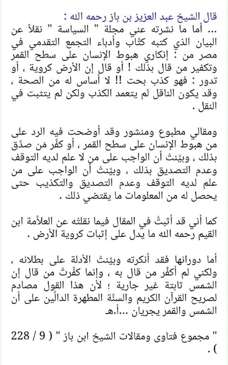 ونشر ابن مساعد رد الشيخ عبد العزيز بن باز بخصوص كون الأرض لاتدور، ردًا على افتراءات توكل كرمان.