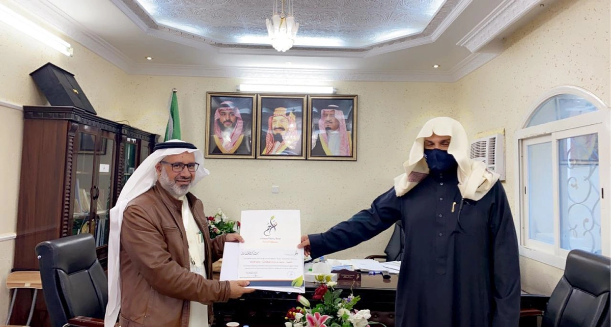 أمير الباحة الرئيس الفخري للجنة تراحم الباحة يقدم شهادة شكر وتقدير لمؤسسة بن رداد الخيرية