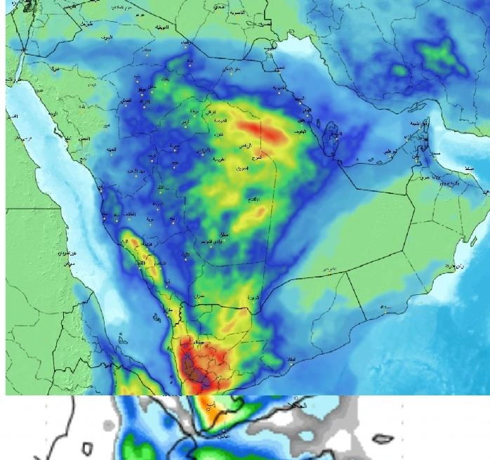 وقال " الحصيني " أن: " الأمطار المتوقعة من متوسطة الى غزيرة وحبات برد "؛ مضيفًا:" فرصة السيول واردة اضبطوا مسايكم متوقع أن نعيش أجواء ربيعة وجميلة.. متوقع أن تمتد الحالة الممطرة إلى دول الخليج العربي.. هذه قراءة عامة لنماذج الطقس والتغير وارد لأنها توقعات والأصل هو الفأل والله أعلم " .