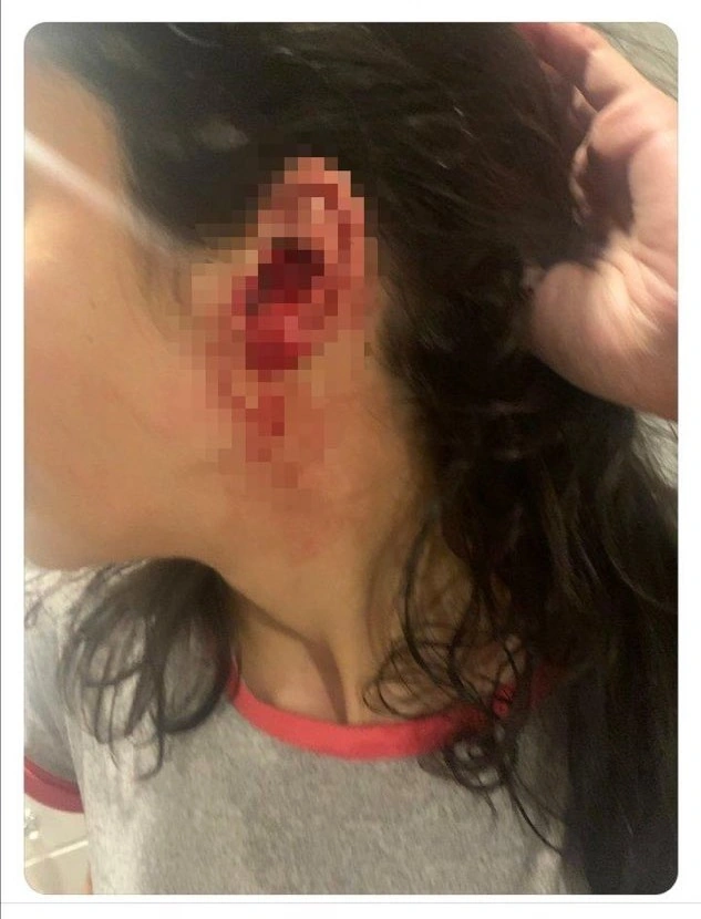 بالصورة..استغاثة فتاة عنفها شقيقها وقطع أذن أختها