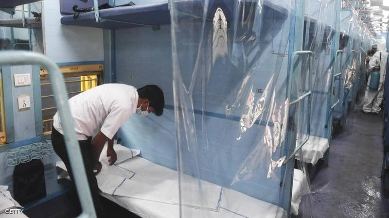 بالصور..الهند تحول القطارات إلى مستشفيات مع تفشي الفيروس
