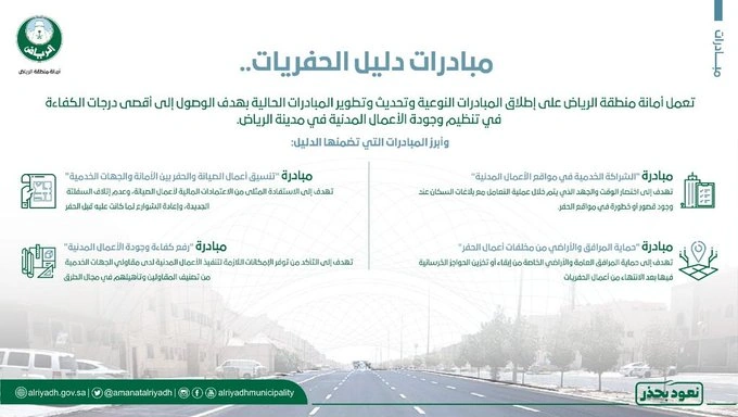 أصدرت أمانة منطقة الرياض تنظيمات جديدة لحفريات الطرق داخل المدينة، مشيرة إلى أنه يمنع الحفر قبل مرور 5 أعوام من سفلتة الشوارع.