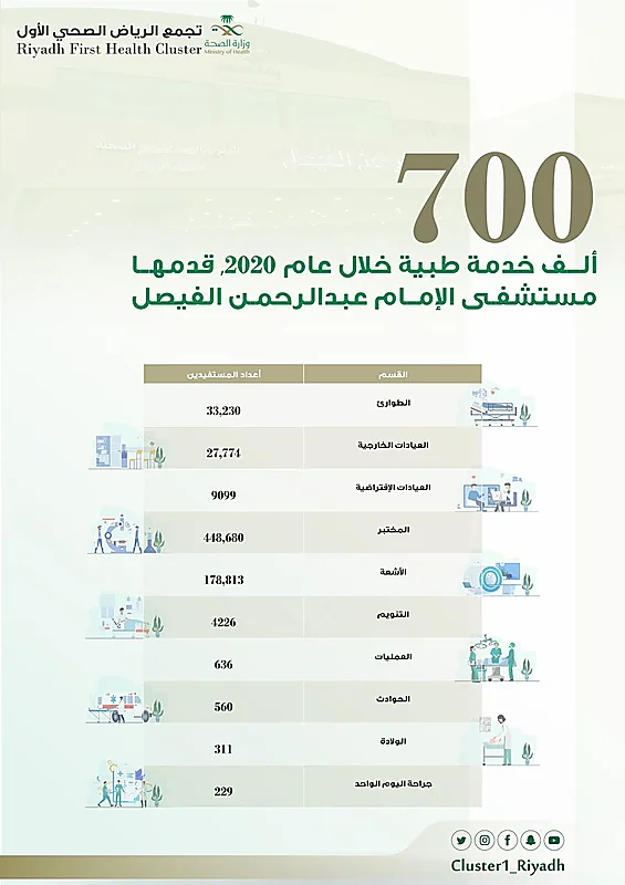 أكثر من 700 ألف خدمة طبية قدمها مستشفى الإمام عبدالرحمن الفيصل