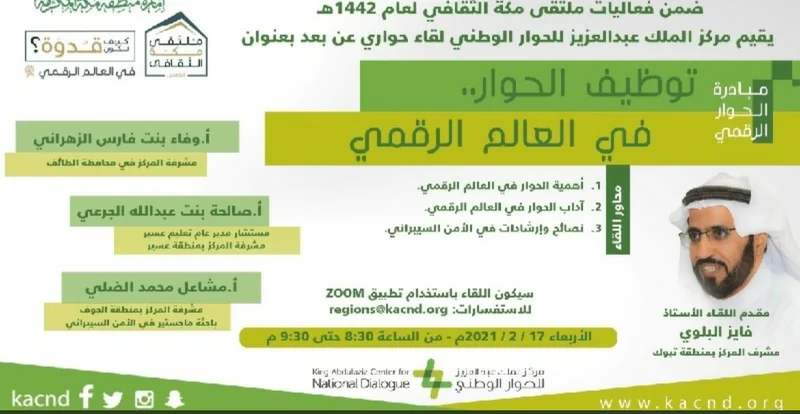 مركز الملك عبدالعزيز للحوار الوطني يناقش كيفية توظيف الحوار في العالم الرقمي