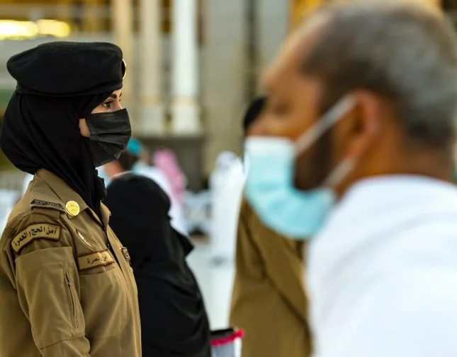 وانتشرت الصورة على نطاق كبير في منصات التواصل بسبب مشاركة العناصر النسائية في تأمين المسجد الحرام، وحماية المعتمرين.