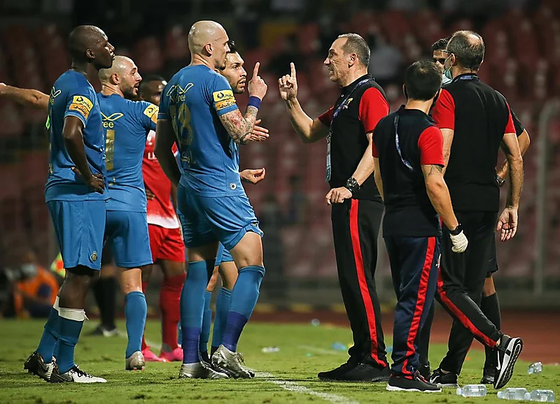 مشاهد فاضحة بين الجهازين الفنيين واللاعبين عقب مباراة النصر والوحدة
