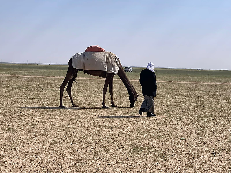 واضاف العنزي ان مربي الابل خاصة تواجدوا بكثرة في الواحات الخضراء القريبة من هجرتهم .