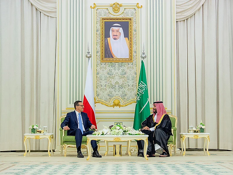 استقبل صاحب السمو الملكي الأمير محمد بن سلمان بن عبدالعزيز آل سعود ولي العهد رئيس مجلس الوزراء، في الديوان الملكي بقصر اليمامة اليوم، دولة السيد ماتيوس مورافيسكي رئيس وزراء جمهورية بولندا.