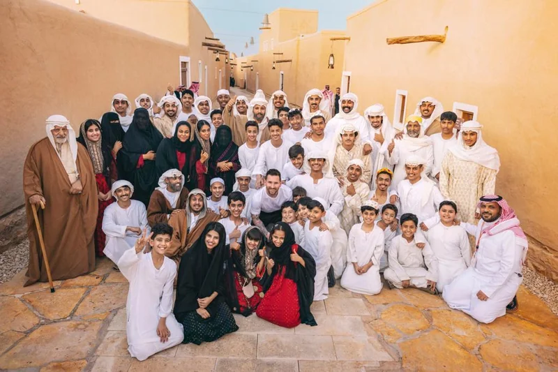 وظهر ميسي مع عائلته، اليوم الثلاثاء، في مدينة الدرعية التاريخية، حيث التقطت له صور في حي الطريف الشهير، برفقة زوجته وابنيه.