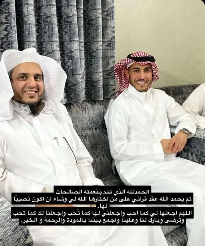ونشر الغنام صورة من عقد قرانه، معلقا بقوله: "الحمدلله الذي تتم بنعمته الصالحات تم بحمد الله عقد قراني على من اختارها الله لي وشاء أن أكون نصيبا".