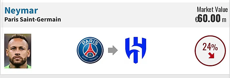 وضع موقع «Transfermarket» ، المختص بسوق الانتقالات صفقة انتقال اللاعب البرازيلي "نيمار دا سيلفا" ، نجم نادي باريس سان جيرمان ، إلى الهلال ضمن الصفقات المحتملة.