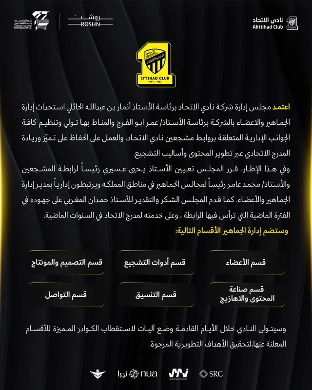 استحداث إدارة الجماهير بنادي الاتحاد