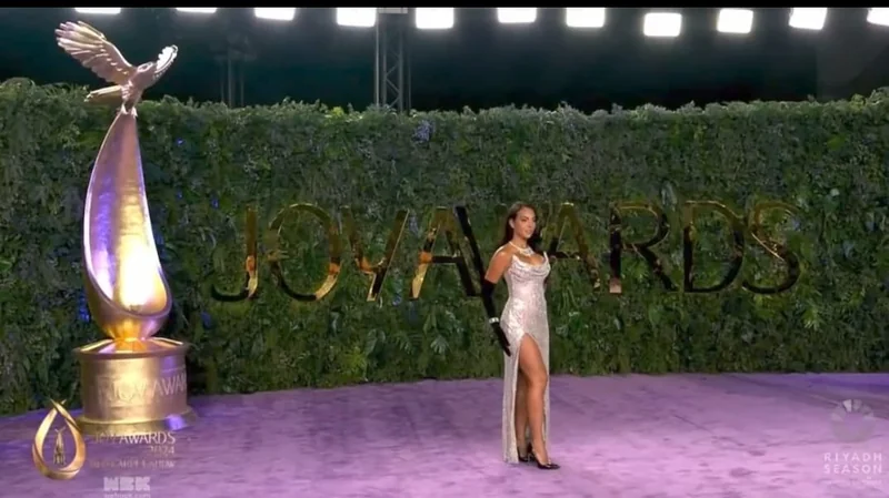 ظهرت خبيرة التجميل جورجينا زوجة نجم نادي النصر البرتغالي كريستيانو رونالدو اليوم السبت على سجادة اللافندر كاربت لحضور حفل جوي أورد 2024 ضمن فعاليات موسم الرياض.