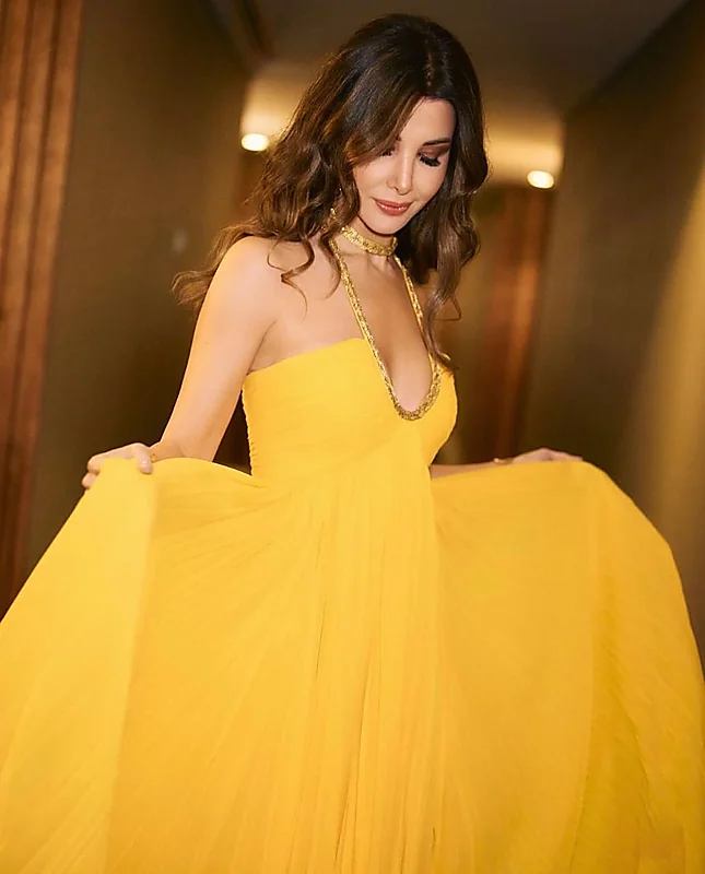 وشاركت نانسي عجرم جمهورها بنشر عدة صور لها عبر حسابها الشخصي على موقع انستغرام من حفلها الغنائي، وظهرت وهي مرتدية فستانا أصفر اللون بفتحة صدر، يصل سعره إلى 7855 يورو.