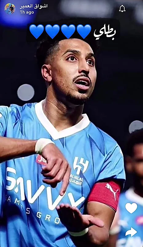 تفاعلت زوجة لاعب نادي الهلال سالم الدوسري، مع تسجيله الهدف رقم 100 بقميص الزعيم.