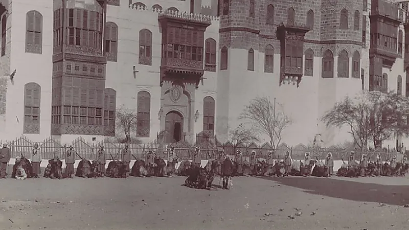 وثقت صورة نادرة عساكر الهجانة بركابهم تحت دار السقاف في حارة أجياد في مدينة مكة المكرمة.
