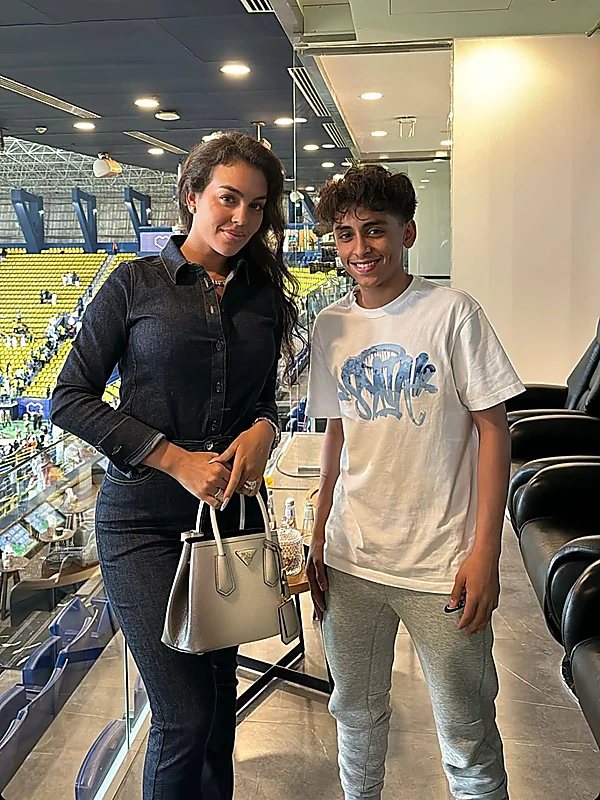 ظهر لاعب فريق النصر تحت سن 13 عاما نواف الشهير "بأبو ناجي" برفقة خبيرة الأزياء الأرجنتينية جورجينا صديقة نجم النصر البرتغالي كريستيانو رونالدو.