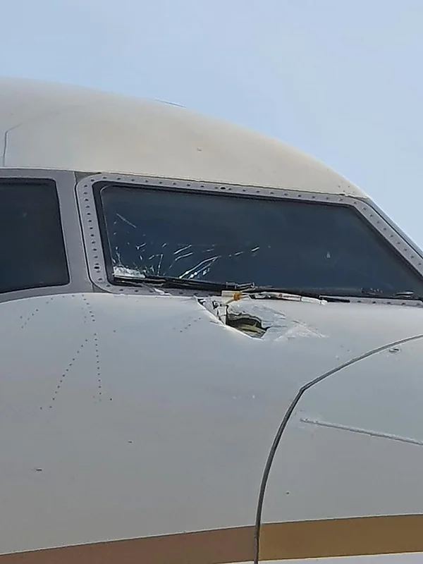 وتداولت منصات التواصل الاجتماعي صورا تظهر طائرة الخطوط السعودية والتي تحمل التسجيل HZ-AK36 بعد تعرضها لأضــرار في مقدمتها وزجاج قمرة القيادة.