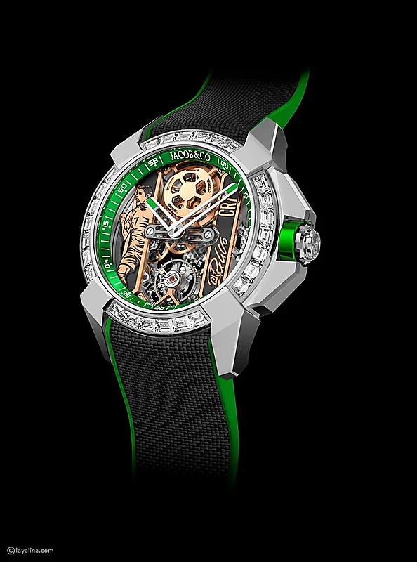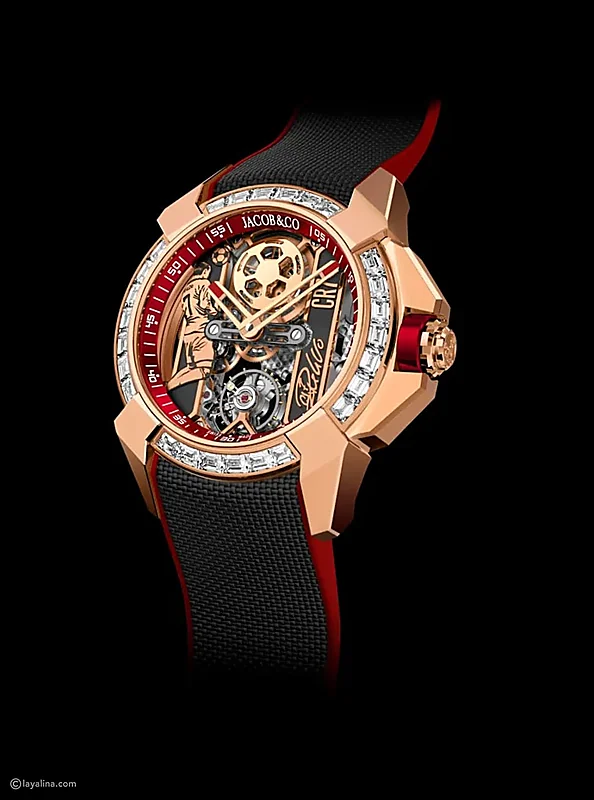 تعد ساعة رونالدو الجديدة من تصميم Jacob & Co، وهي ليست مجرد ساعة عادية، بل هي قطعة فنية تعكس الفخامة والأناقة. تم تصميم هذه الساعة بلمسات مستوحاة من مسيرة اللاعب المليئة بالإنجازات، ويظهر في تصميمها الرقم الأسطوري “7” الذي يشتهر به رونالدو.