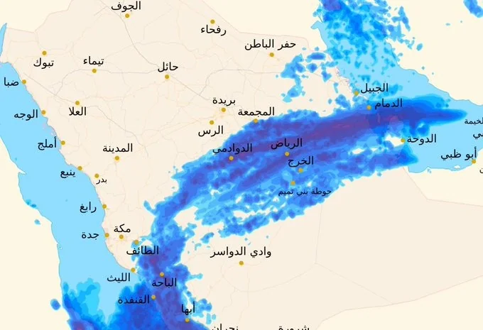 كما توقع هطول أمطار خفيفة إلى متوسطة على أجزاء من الرياض و جازان، المدينة المنورة، القصيم والحدود الشمالية.