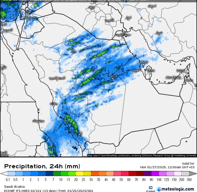 وأوضحت الخريطة المرفقة أنه من المتوقع سقوط أمطارًا متفرقة على الرياض وحائل وأبها والهفوف.