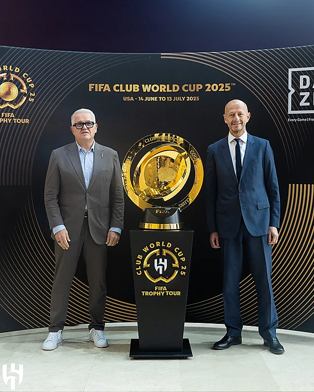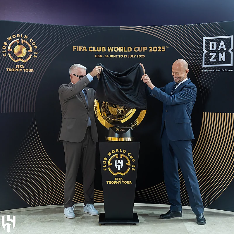 كشف ممثل الاتحاد الدولي لكرة القدم FIFA والرئيس التنفيذي لنادي الهلال ستيف كالزادا، عن كأس العالم للاندية في ملعب المملكة أرينا خلال جولة الكأس للأندية المشاركة في المونديال العالمي.