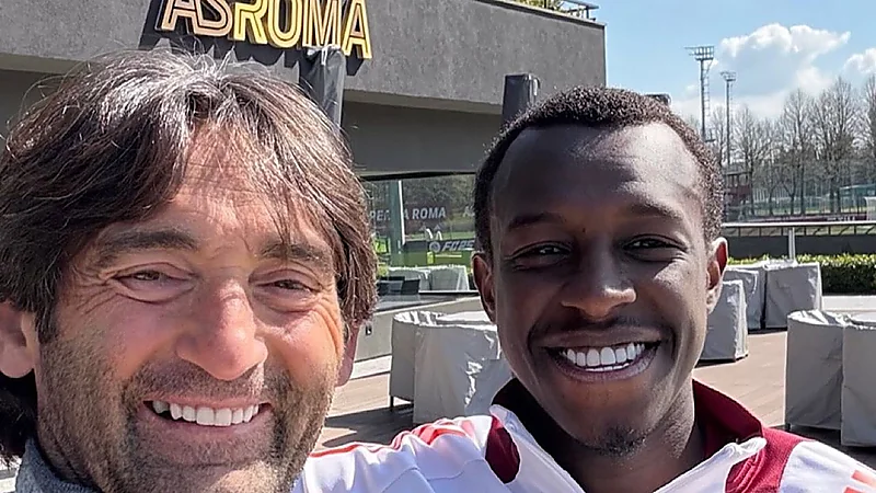 التقي الفرنسي ديفيد دوتشي مساعد هيرفي رينارد مدرب المنتخب الوطني لكره القدم مع سعود عبد الحميد لاعب فريق روما في ايطاليا .