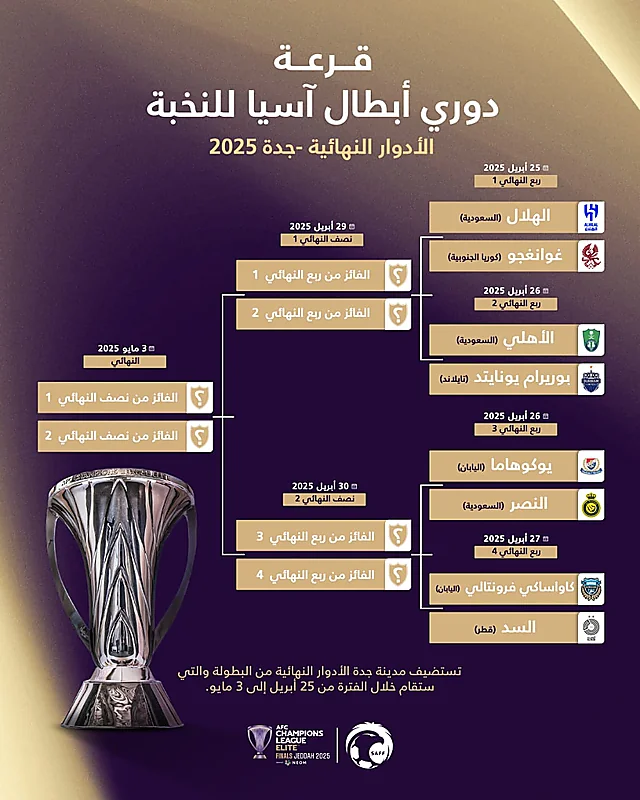 وإليكم جدول مباريات الأدوار النهائية لدوري أبطال آسيا للنخبة