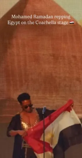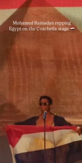 ورفع الفنان محمد رمضان علم مصر خلال مشاركته في مهرجان Coachella الموسيقي الشهير بالولايات المتحدة الأمريكية، أحد أكبر المهرجانات الموسيقية في العالم، موجّهًا رسالة فخر واعتزاز ببلده وسط جمهور دولي ضخم.