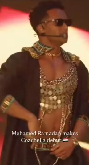 أثار الفنان المصري محمد رمضان الجدل، بإطلالة غريبة في حفله بمهرجان كوتشيلا العالمي بأمريكا.