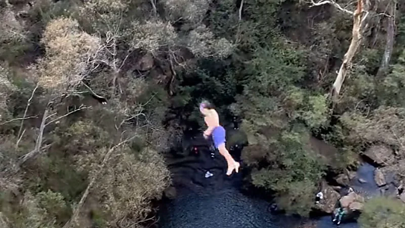 ووثقت مقاطع مصورة لحظة تنفيذ غراهام قفزة خطيرة من أعلى شلال مينيهها في منطقة الجبال الزرقاء بولاية نيو ساوث ويلز، من ارتفاع بلغ 42.5 متراً.