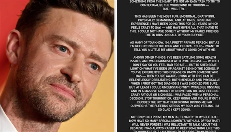 وأوضح تيمبرليك أن الهدف من مشاركته لهذه التفاصيل ليس كسب التعاطف، بل إعطاء لمحة صادقة عن التحديات التي واجهها خلف الكواليس، قائلاً: "التعايش مع داء لايم أمر مُرهق جسدياً ونفسياً، عندما تلقيت التشخيص، شعرت بالصدمة، لكنه ساعدني على فهم أسباب الألم العصبي والتعب الشديد الذي كنت أواجهه على المسرح".