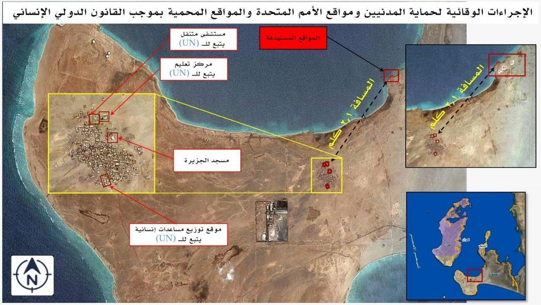 وأوضح العقيد المالكي أن الأهداف المدمرة شملت عدد ( 6 ) مواقع لتجميع وتفخيخ واطلاق الزوارق المفخخة والمسيّرة عن بعد وكذلك الألغام البحرية، حيث يتم استخدام هذه المواقع للإعداد لتنفيذ الأعمال العدائية والعمليات الارهابية والتي تهدد خطوط الملاحة البحرية والتجارة العالمية بمضيق باب المندب وجنوب البحر الأحمر، مبيناً أن عملية الاستهداف تتوافق مع القانون الدولي الإنساني وقواعده العرفية وتم اتخاذ الإجراءات الوقائية لحماية المدنيين ومواقع الأمم المتحدة والمنظمات الدولية الغير حكومية والتي تبعد مسافة ( 2.1 ) كلم من المواقع المستهدفة.