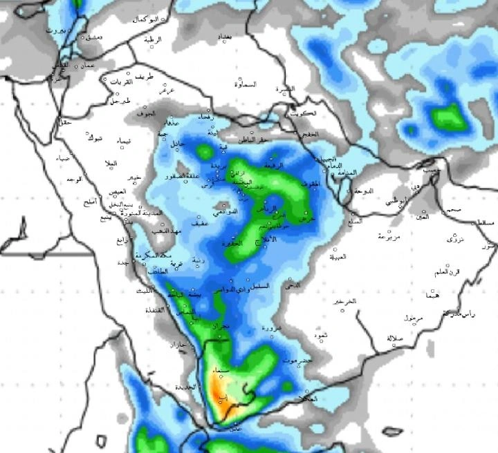وأوضح عبدالعزيز الحصيني، عبر حسابه الشخصي على موقع التدوين الصغير تويتر، أن: " الحالة الممطرة الربيعية المعاشة تشمل معظم المناطق واستمراريتها -لعدة أيام- وارتفاع مؤشر أمطارها متوقع من اليوم الأحد.. موطن الغزارة على عموم منطقة الرياض، والدهناء، وشرق حائل، والباحة، وعسير، وجازان وشرقها".