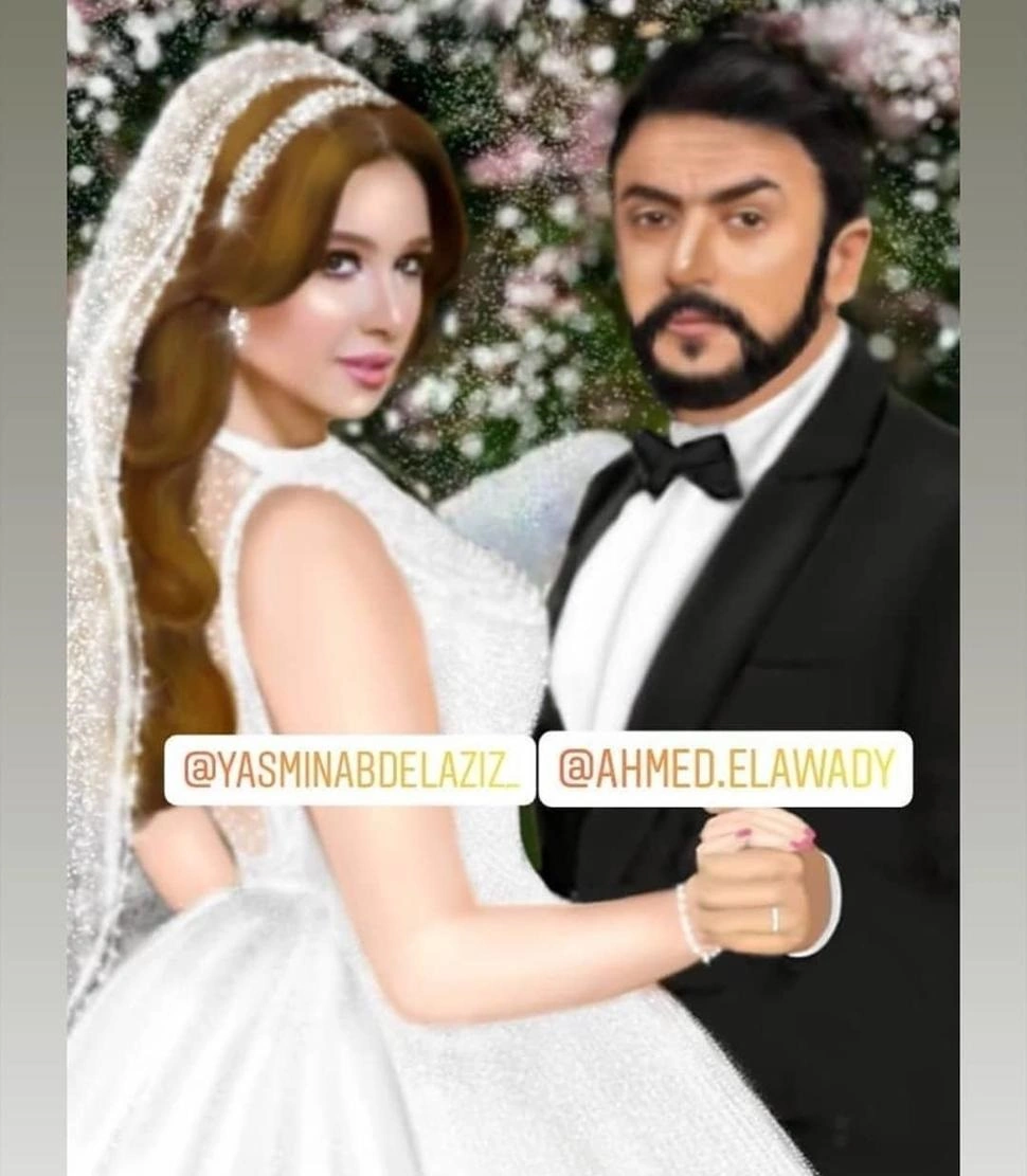 كشفت الفنانة المصرية ياسمين عبد العزيز عن زواجها بالفنان أحمد العوضي ، عبر حسابها الخاص "إنستجرام" ، من خلال صورة تخيلية أهداها إليها أحد الحسابات ظهرت فيها ترتدي الفستان الأبيض ومعها زوجها أحمد العوضي ببدلة سوداء كصورة رسمية لزفافهما.