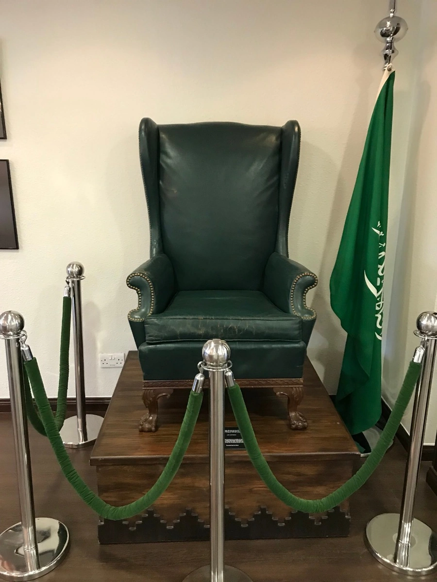 وجلس على هذا الكرسي ثلاثة ملوك هم : الملك سعود، والملك فيصل، والملك خالد، أثناء زياراتهم الرسمية لشركة أرامكو.