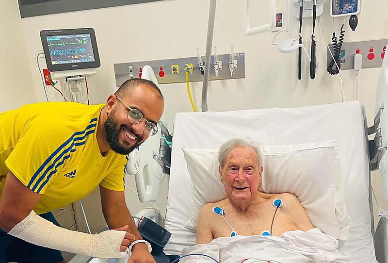 في مشهد بطولي، تمكن المبتعث في استراليا "نوح الحربي" من انتشال وإنقاذ جاره الأسترالي الذي يبلغ من العمر 94 عاماً بعد حريق كبير اندلع في منزله.