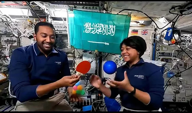رائدا الفضاء السعوديان يجريان تجربة الطائرة الورقية الفضائية مع طلاب المدارس بالمملكة